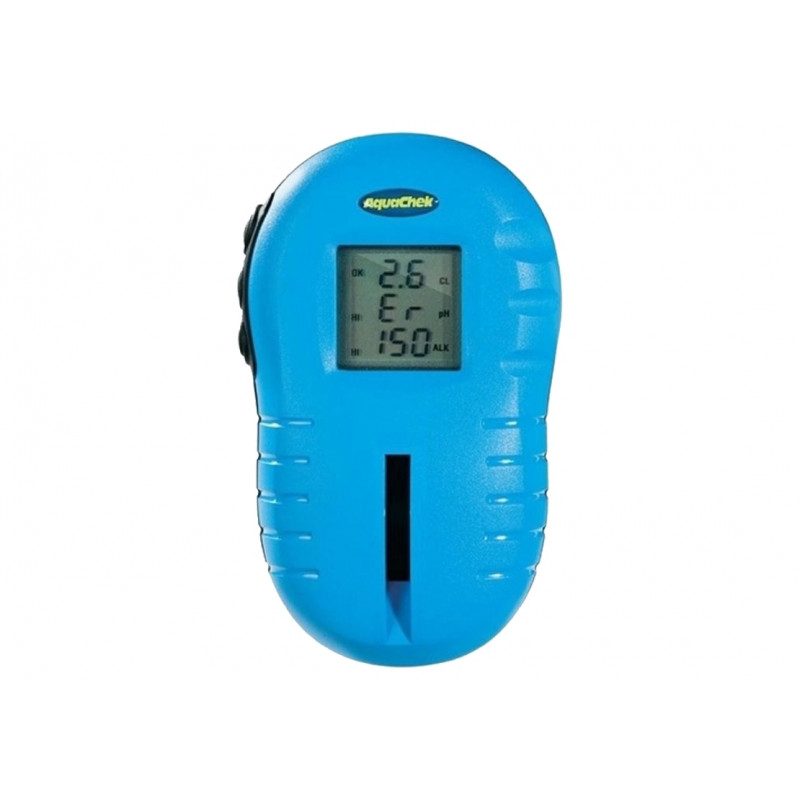 AquaCheck TruTest je digitálny čítačkou prúžkov. Ponúka vysokú presnosť pri čítaní - odpadajú rozpaky ohľadom presného odtieňa výslednej farby, čítačka je prečíta za Vás a hodnotu Vám ukáže display. Vďaka pokrokovej čítacie technológii jednoducho ponoríte testovací prúžok do vírivky alebo do bazéna a získate rýchlo presné výsledky v niekoľkých málo sekundách. Merať môžete: voľný chlór alebo bróm, hodnotu pH a celkovú alkalitu.