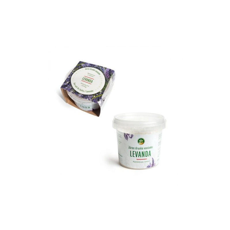 Aromatická soľ do kúpeľa 90 g (2-3 lyžice) sa rozpustí v 10 litroch teplej vody (36-38C).